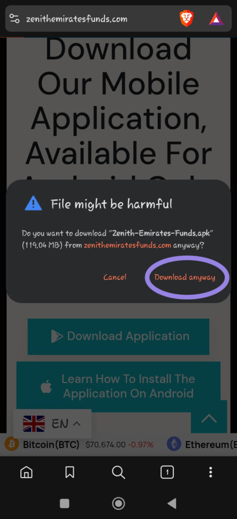 You will receive a warning when downloading the application. Click on “Download anyway”