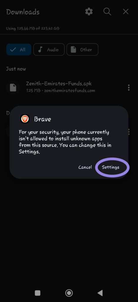 Incase you receive this pop-up, click on settings and follow the next instruction.
